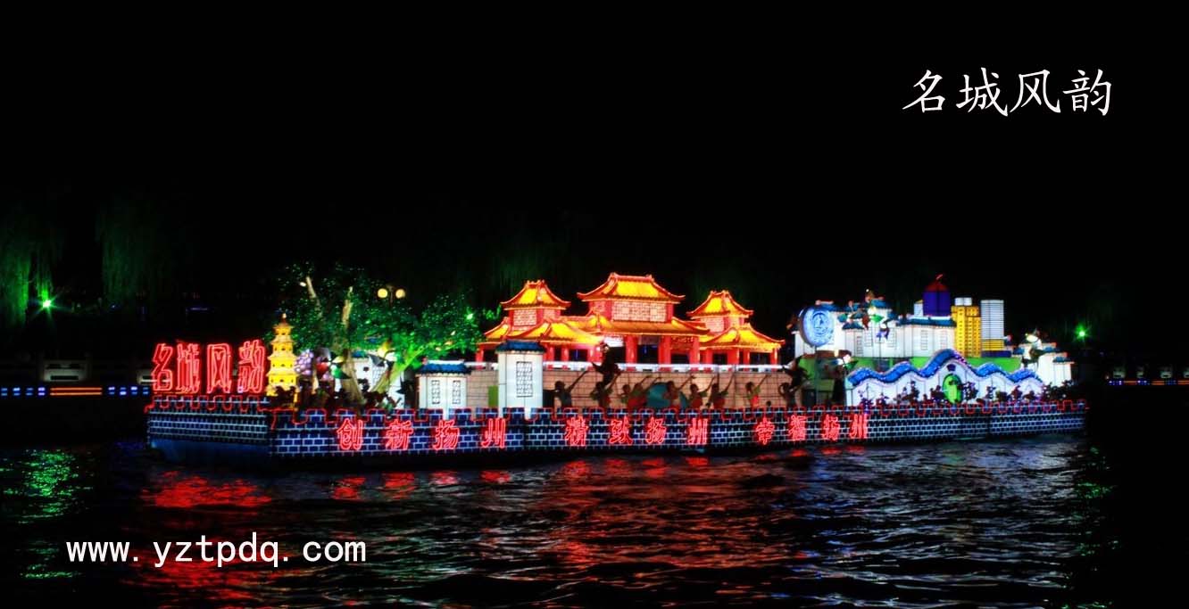 充分展示揚(yáng)州建設(shè)成就和城市風(fēng)采的“名城風(fēng)韻”號花船由揚(yáng)州建設(shè)局承制。花船以古典和現(xiàn)代風(fēng)格的完美融合,表現(xiàn)出人與自然的親近,城市與綠色的交融,時(shí)尚與傳統(tǒng)的和諧,盡展“精致?lián)P州、創(chuàng)新?lián)P州、幸福揚(yáng)州”的神采和風(fēng)韻。
