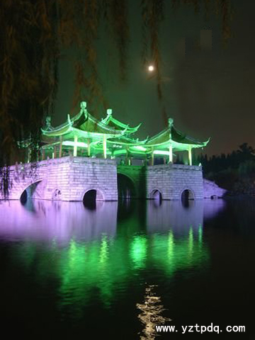 揚(yáng)州曾經(jīng)被稱(chēng)為月亮城,一首“天下三分明月夜,二分無(wú)賴(lài)是揚(yáng)州”使揚(yáng)州占去了月亮三分之二的光輝。傳說(shuō),中秋夜在揚(yáng)州的五亭橋可以看到15個(gè)月亮。