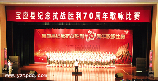 為紀念中國人民抗日戰(zhàn)爭暨世界反法西斯戰(zhàn)爭勝利70周年,9月1日下午,寶應縣紀念抗戰(zhàn)勝利70周年歌詠比賽在縣行政中心唱響,歌聲嘹亮、彩旗飄揚,掀起了寶應縣紀念抗戰(zhàn)勝利70周年的高潮。寶應縣領(lǐng)導王友芳、顧長榮、黃才堂、楊步云、王松年等出席活動。