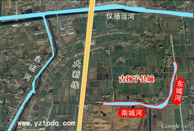 2014年12月4日,江蘇省紅樓夢(mèng)學(xué)會(huì)會(huì)員陸守超,根據(jù)衛(wèi)星地圖結(jié)合史料記載,在儀征經(jīng)濟(jì)開(kāi)發(fā)區(qū)(新城鎮(zhèn)東南)越江村或東升村境內(nèi),發(fā)現(xiàn)疑似古揚(yáng)子縣城的東城河和南城河遺存。古揚(yáng)子縣城就位于當(dāng)中焦莊組、曹莊組和邵莊組一帶。在古揚(yáng)子縣城遺址的東北角還發(fā)現(xiàn)了都天廟遺址。