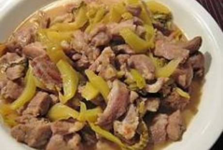 記得小時(shí)候,咸菜是家里招待客人的一道主菜。有客自遠(yuǎn)方來,母親從壇子里抓出一小碗咸菜,用清水一洗,將五花肉切成很小的肉片。添柴燒旺火,把肉片入鍋爆炒,很快香氣撲鼻。再將咸菜倒入翻炒,須臾,放蔥、蒜、辣椒,蓋上鍋蓋,少許時(shí)間揭開,咸菜炒五花肉,香氣陣陣,看著就眼饞了。難怪家鄉(xiāng)人說“咸菜炒五花肉,神仙也來湊”。咸菜除了炒五花肉,還和很多食物都是絕配。咸菜炒雞蛋、咸菜炒小藕、咸菜燒豆腐、咸菜慈姑湯等等。收了新小麥,磨些面粉,這時(shí)母親就會(huì)抓點(diǎn)咸菜切點(diǎn)蔥花和面做餅。我站在鍋臺(tái)前,口水淌淌的。母親用鍋鏟子從鍋里給我鏟一塊,我手捧咸菜麥面餅,吹掉熱氣,小心翼翼地咬一口,真香啊……