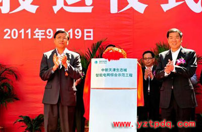 天津市委副書記、濱海新區(qū)區(qū)委書記何立峰和國家電網(wǎng)公司副總經(jīng)理、黨組成員欒軍共同為中新天津生態(tài)城智能電網(wǎng)綜合示范工程投運(yùn)揭牌。中新天津生態(tài)城智能電網(wǎng)綜合示范工程是天津智能電網(wǎng)建設(shè)發(fā)展的標(biāo)志性工程。此工程遵循“可實(shí)行、可復(fù)制、可推廣”的規(guī)劃思路,努力構(gòu)建安全可靠、優(yōu)質(zhì)清潔、高效互動(dòng)的能源供應(yīng)體系和服務(wù)體系。該工程投運(yùn)后,不僅風(fēng)電、光伏發(fā)電等可再生能源利用率可達(dá)到20%以上,而且電網(wǎng)能實(shí)現(xiàn)和有線電視、IP電話、互聯(lián)網(wǎng)的相互融合,其遙控、遙測、信息反饋的智能化能力可做到從居民生活到公共設(shè)施,再到工業(yè)生產(chǎn)的全涵蓋。