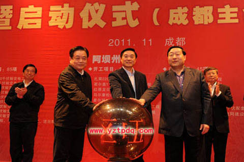 11月4日17時(shí)24分,在四川省委、省政府與國(guó)家電網(wǎng)公司共同舉行的“十二五”四川藏區(qū)電網(wǎng)項(xiàng)目集中開(kāi)工暨啟動(dòng)儀式上,四川省委書記劉奇葆、省長(zhǎng)蔣巨峰與國(guó)家電網(wǎng)公司總經(jīng)理、黨組書記劉振亞在成都現(xiàn)場(chǎng)共同按下啟動(dòng)儀式球,標(biāo)志著四川藏區(qū)電網(wǎng)進(jìn)入快速發(fā)展的嶄新時(shí)期。