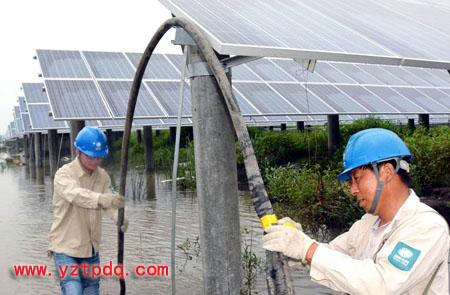 寶應(yīng)漁光互補(bǔ)30兆瓦光伏項目,位于揚(yáng)州市寶應(yīng)縣射陽湖鎮(zhèn),占地面積930畝,于2013年4月8日開工建設(shè),10月31日并網(wǎng)發(fā)電。經(jīng)寶應(yīng)縣供電公司工程部負(fù)責(zé)人介紹,今年4月初,該供電公司接受該項目工程總承包委托。在項目建設(shè)過程中,公司積極主動工作,從7.5千米長的110千伏線路施工到110千伏變電接入間隔的施工,嚴(yán)格按照施工圖紙進(jìn)行,監(jiān)理全程跟蹤監(jiān)督,對每道工序嚴(yán)格把關(guān),同時,認(rèn)真為客戶做好“漁光互補(bǔ)”光伏項目申報、接入方案制定、基建臨時用電、項目驗(yàn)收、運(yùn)行值班人員安全培訓(xùn)等工作。
