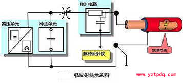 電纜的高阻故障由于故障點(diǎn)的電阻較大(大于10倍的電纜波阻抗),低壓脈沖在故障點(diǎn)沒有明顯的反射。故不能用低壓脈沖法來測量,而只能由高壓設(shè)備發(fā)出高壓信號(沖閃時發(fā)出脈沖高壓),使故障點(diǎn)產(chǎn)生閃絡(luò)性放電,從而發(fā)生電壓突跳。這個突跳電壓在故障點(diǎn)和測試端之間來回反射,根據(jù)每一次往返所經(jīng)歷的時間和電波傳播速度,同樣用上面的公式計算出故障點(diǎn)的距離。低壓脈沖法由儀器內(nèi)部產(chǎn)生觸發(fā),而閃絡(luò)法則由外部高壓產(chǎn)生觸發(fā)。此現(xiàn)象可以在不同情況下按采樣鍵得到反映,在低壓脈沖時按采樣波形馬上顯示出來,而高壓閃絡(luò)時按采樣鍵波形并不馬上反映出來,而是等外部高壓觸發(fā)打火后才顯示出來。此種代表性儀器為本公司生產(chǎn)的:電纜故障測試儀。