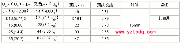 3、從早期國外部分電力公司較早試用交流耐壓的經(jīng)驗(yàn)來看,例如加拿大安大略水電局對(duì)額定電壓13.8kV和8kV的橡塑電纜,5min的交流耐壓值也是接近2Uo。此標(biāo)準(zhǔn)用了6年(1983~1989年),認(rèn)為是合適的。這也是一種旁證,說明我國一些地區(qū)制定的電壓標(biāo)準(zhǔn),目前看來是比較合適的,可以試用一段時(shí)間,再總結(jié)經(jīng)驗(yàn)。