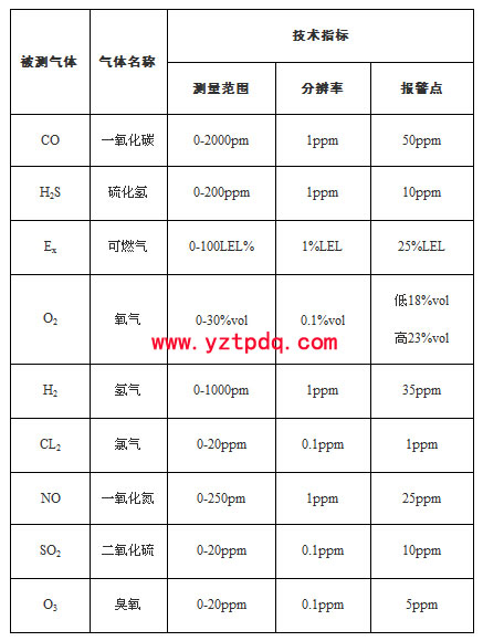 6、 響應(yīng)時(shí)間: 氧氣<30S;一氧化碳<40s;可燃?xì)?lt;20S;硫化氫 <40S (其他略)。