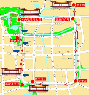 “綠楊城郭”水上精品旅游線路開通后,游客乘游船游覽“兩古一湖”將看到怎樣的情景?王娟描述,從風(fēng)景如畫的瘦西湖東堤登船,穿過清二十四景之一的虹橋攬勝;路過西園曲水,在湖水轉(zhuǎn)彎處看到丁溪,其水路有明清兩代的建筑妙遠(yuǎn)堂、薜蘿水榭、濯清堂、浣香榭;途經(jīng)柳湖路西的揚(yáng)州大學(xué)師范學(xué)院;隨即穿越架接二道河兩岸的來鶴橋、騎鶴橋和雙虹橋三座橋;進(jìn)入荷花池公園;途經(jīng)南門遺址;然后通過二道溝上新建的通江門橋,進(jìn)入古運(yùn)河;沿著古運(yùn)河向北,一路欣賞揚(yáng)州古城的魅力,最后到達(dá)東關(guān)古渡,來到揚(yáng)州國家級歷史文化名街“東關(guān)街”。