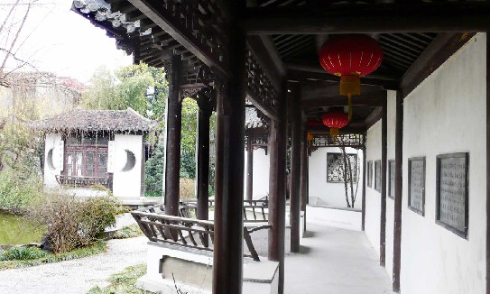 站在小院內(nèi),環(huán)顧四周。北為二分明月樓,西南有迎月樓,東有夕照閣,院西為伴月亭連南北向長(zhǎng)廊,廊壁嵌有徐凝等詩(shī)詞磚刻。