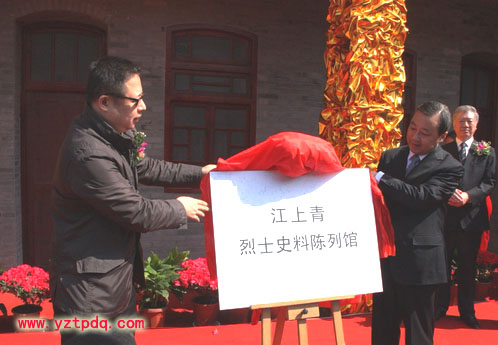揚州市委書記、市長謝正義,江上青烈士親屬代表彭健明為史料陳列館揭牌。省民政廳常務(wù)副廳長侯學(xué)元,以及徐益民、趙旻、張躍進、張愛軍、袁秋年、盧桂平、陳揚、王智永、袁啟俊、桑光裕等市四套班子領(lǐng)導(dǎo)出席開館儀式。