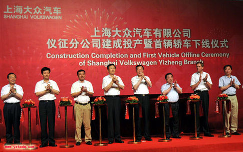 揚(yáng)州網(wǎng)綜合報(bào)道 今天上午十一點(diǎn),上海大眾汽車有限公司儀征分公司舉行建成投產(chǎn)暨首輛轎車下線儀式。江蘇省委書記羅志軍,省長李學(xué)勇、省委常委、秘書長樊金龍,副省長張衛(wèi)國、揚(yáng)州市委書記謝正義、市長朱民陽等領(lǐng)導(dǎo)出席儀式并剪彩,共同為首輛轎車下線進(jìn)行啟動。