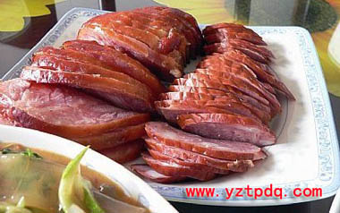 汪曾祺先生曾在他的小說《異秉》里,提到過一種叫做“蒲包肉”的熏燒食品,他在文中說:“王二擺在保全堂的熏燒攤子,除了回鹵豆腐干之外,主要是牛肉、蒲包肉和豬頭肉。”并進而介紹:蒲包肉“是用一個三寸來長,直徑寸半的蒲包,里面襯上豆腐皮,塞滿了加了粉子的碎肉,封口,攔腰用一道麻繩系緊,成一個葫蘆形。煮熟以后倒出來,也是一個帶有蒲包印跡的葫蘆,切成片很香。”
