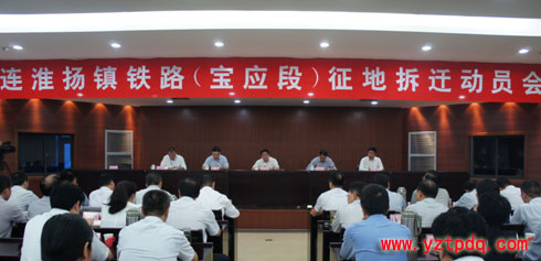 為加快連淮揚鎮(zhèn)鐵路(寶應段)建設步伐,保障項目順利實施,9月30日,江蘇寶應縣委、縣政府專題召開連淮揚鎮(zhèn)鐵路(寶應段)征地拆遷動員會??h委副書記、代縣長王逍霄在會議上要求,要圍繞“高”、“嚴”、“快”三個字,做好征地拆遷工作??h委常委、常務副縣長張偉主持會議,副縣長閆偉參加,市鐵辦主任尹建平、中鐵十九局集團連淮揚鎮(zhèn)鐵路項目指揮長劉宏圖應邀出席會議。